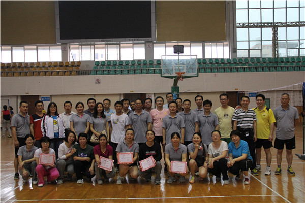 所属的各教研室、实验中心和两办(学工办、院办)人员分别组成的6支队伍参加,分淘汰赛和循环赛两个阶段进行,还特别规定了场上至少要有2名女运动员参赛。经过激烈角逐,最终决出了名次:应用化学教研室获得第一名,学工办和院办联合队、电化学教研室获并列第二名,实验中心、生物工程教研室、化学与化工教研室获得并列第三名。