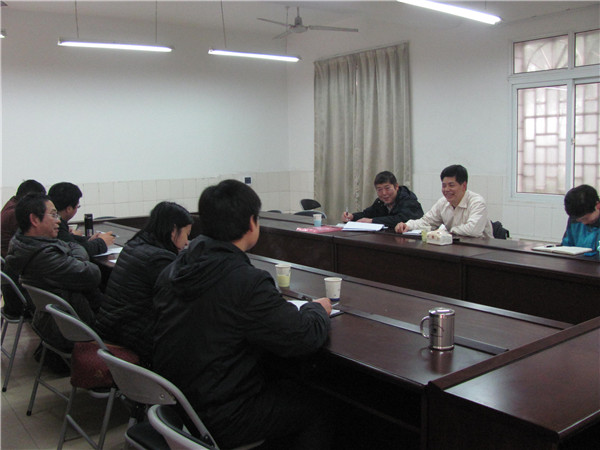 调研会上,陶剑飞副书记首先代表学院党委做了《凝心聚力务实效,思索创新促发展——化生学院基层党支部组织生活情况汇报》。陶书记从学院党委党支部设置和支部人数情况;党支部组织生活开展情况及“三会一课”制度落实情况;党支部组织生活的创新点和亮点;对完善基层党支部组织生活制度的意见和建议四方面介绍了学院党委的基层党支部组织生活开展情况。重点汇报了学院党委探索的“4+1”的组织生活开展模式,即:落实四项工作、开展一项创新型活动。“四项工作”主要是:党员教育、党员民主生活会、党员发展及转正大会、支部总结大会;“一项创新型活动”则结合该学期主题活动安排,围绕“服务型、学习型、活动型、研究型、创新型、民主型”特色支部建设内容,开展各类特色活动。