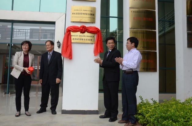 ——桂林优利特电子集团有限公司检测试剂联合实验室”。10月29日上午,联合实验室揭牌仪式在雁山校区举行,学校副校长陈贵英,桂林优利特电子集团有限公司总裁石平、顾问专家美国北卡来罗纳大学黄英星(Enshang Huang)教授、副总裁刘军、总裁助理彭银清等、我校化学与生物工程院长李建平、副院长杨建文、党委副书记陶剑飞、部分教师和学生代表参加了揭牌仪式。仪式由我校化学与生物工程院长李建平主持。 在揭牌仪式上,桂林优利特电子集团有限公司总裁石平、顾问专家黄英星(Enshang Huang)教授、副总裁刘军分别作了简短讲话,就公司生产、产品研发、有关领域的科研前沿等情况做了介绍,表示今后要和我校继续深化合作,务求实效。我校化学与生物工程院长李建平则对联合实验室的筹建过程以及今后双方的努力方向作了说明。