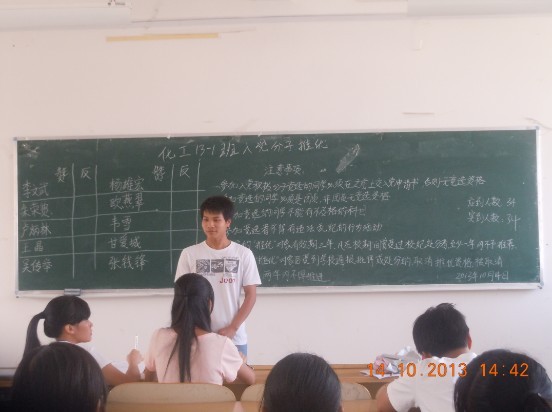 近日,化生学院各团支部陆续开展入党积极分子推优活动,此活动得到了各团支部的积极响应,并圆满完成