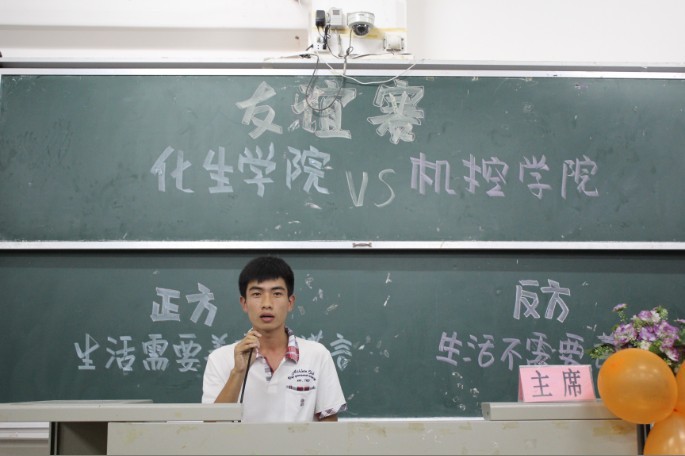 与机控学院的友谊辩论赛于05307精彩上演。学院团委副书记杨晓老师、机控学院13级辅导员刘颖洁老师担任嘉宾,校辩论队副队长胡阿宁、艺术学院辩论队副队长施佳佳及两院辩论队代表出席了本次活动并担任评委。