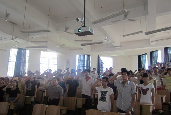 在雁山校区05101教室成功开展了毕业生党员重温入党誓词活动。学院全体毕业生党员、预备党员参加了此次活动,会议由学院党委胡祖生书记主持。