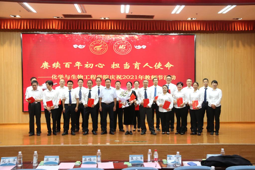 以庆祝中国共产党成立100周年和第37个教师节为契机,于9月7日上午在雁山校区图书馆报告厅开展以“赓续百年初心担当育人使命”为主题的教师节庆祝活动。学校党委常委、副校长梁福沛、学院党委书记梁军、院长匡小军以及学院全体教师、学生代表等220余人参加了本次活动。