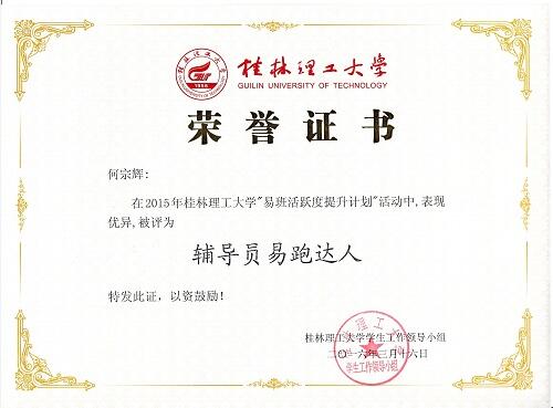 以全校第一的好成绩,被评为“最活跃易班学院”,12级辅导员何宗辉老师荣获“辅导员易跑达人” 称号,私房俱乐部