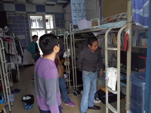 在走访过程中,梁书记每到一个宿舍都会询问同学们近期在学校的生活、学习情况,并要求同学们一定要提高安全意识,树立安全防范理念,强调要注重宿舍安全问题,禁止在宿舍使用大功率电器。同时,梁书记也叮嘱同学们要利用假期时间好好准备英语四级考试,补习弱势科目。