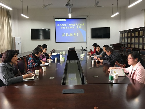 导航痕迹 当前位置: 私房俱乐部 >> 新闻资讯 >> 私房俱乐部新闻 >> 正文 广西师范大学化学与药学学院潘英明副院长一行到访私房俱乐部 作者:李海云 发布日期:2016-04-10 浏览次数: 4月1日,广西师范大学化学与药学学院潘英明副院长一行8人到访私房俱乐部 。受学院委托,院长助理李海云、学院团委书记饶筠筠、院办教学秘书汪雯等老师在雁山校区12217会议室接待了来访客人。 座谈会上,院长助理李海云代表学院向潘英明副院长一行介绍了学院的基本情况,并简要介绍了私房俱乐部 在去年本科教学审核评估中的若干举措。双方在本科教学审核评估、实验室建设、大学生学术型人才培养等方面进行了交流和探讨。教务处教学评价与质量管理中心主任李新老师出席座谈会。座谈会后,潘英明副院长一行还参观考察了私房俱乐部 本科教学实验室。 图一:座谈会现场 图二:合影留念 上一条:私房俱乐部 组织开展大学生海外游学面试 下一条:私房俱乐部 领导、老师走访学生宿舍