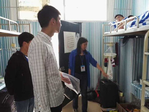 对各宿舍做了是否存在安全隐患的问卷调查,调查内容主要包括墙壁是否掉破损,床架是否腐蚀生锈,以及是否存在其他明显的安全问题。排查工作中,各位老师根据调查结果对存在安全隐患的学生宿舍仔细检查,认真核实,并细心指导同学们如何进行报修整改。期间,同学们积极配合,并未发现大功率电器,但个别宿舍存在地面较脏,物品摆放杂乱的情况。陶老师特别叮嘱同学们要爱护宿舍卫生,同时强调要杜绝在宿舍实用大功率电器,遵守学校宿舍规定,排除安全隐患,保证宿舍安全。