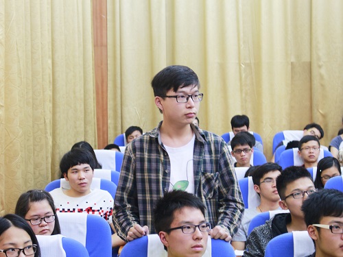 赵队长从当前国际、国内的安全形势开始,分析了港澳、新疆、西藏以及海南安全问题,使同学们对我国目前的安全形势所面临的问题有了较为全面深刻的认识。在谈到宗教活动问题时,他说:“每个人都可以拥有自己的信仰,个人信仰宗教是自由的,但正常的宗教活动要根据法律规定在正规的宗教场所内开展,同学们要有分辨宗教与邪教的能力,自觉抵制邪教。赵队长强调大学生应当重视网络安全问题,要时刻提防不法犯罪分子,要懂得如何判断媒体新闻的真实性,媒体的报道不一定都是真相。最后,赵队长通过现场与同学互动,展示了有效的防身方法,告诉同学们在势单力薄的情况下要用智慧摆脱危险。赵珂队长丰富的案例、幽默的语言、精彩的演示赢得了现场的阵阵掌声。