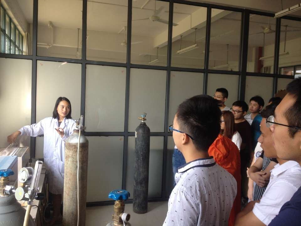 首先参观的是锂离子电池装配中试室,实验员用简单易懂的语言给同学们介绍了锂离子电池的工作原理、装配和生产流程,大家对此产生了浓厚的兴趣和激烈的讨论。随后,参观了物质性能测试室、电解电镀中试室、生物化学实验室、反应工程实验室、化学工艺实验室等,每个实验室的党员代表都对自己所在的实验室做了简单的介绍,使得大家对不同专业的实验内容、实验设备和实验成果等都有了更进一步的了解。