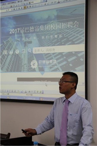 在宣讲环节,该公司华西领事冯经理从公司概况、培训发展、薪酬福利、招聘流程等方面做了详细介绍,也针对同学们普遍关心的问题进行了一一解答。随后,进行了简历投递、笔试以及面试环节。