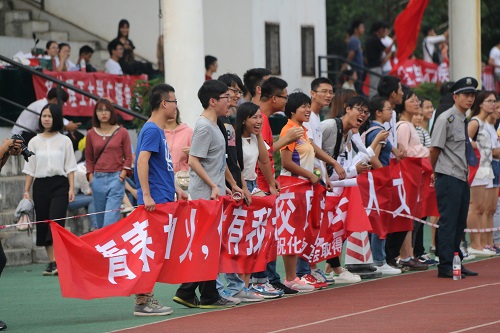 场上喜人成绩的取得,离不开整个化生大家庭的辛勤奉献,哪里有运动员,哪里就会有团委学生会的同学忙碌的身影,也伴有拉拉队挥舞横幅,气势磅礴的呐喊。