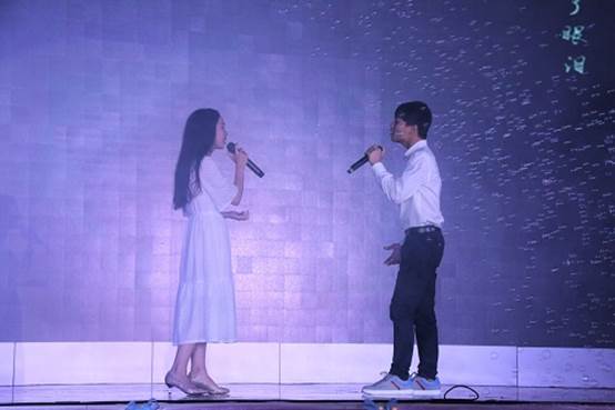团委学生会易班研发部的同学带来的爆笑改版话剧《白雪公主与七个小矮人》,让大家开怀大笑的同时重温了童年的美好,领略了不一样的那些年的回忆。曾经的我们多么幸运,体会到那么多的动人故事,谢丹丹和黄镇云轻轻唱和的《那些年的小幸运》,唱出了大家的心声,勾起来多少回忆。曾经的曾经,那些幸运的事情随着歌声,一幕幕浮现在脑海中。你是否还有《勇气》,对那个人说……“爱真的需要勇气,来面对流言蜚语”,青春就要敢于去爱。第一篇章的表演致此告一段落。人生处处充满惊喜,就如何宗辉老师上台表演。何老师以低沉圆润的嗓音为大家献上《爱拼才会赢》,并借此歌来激励大家在大学四年要努力学习,只有铆足了劲去拼搏、去努力,才会赢得未来的成功。