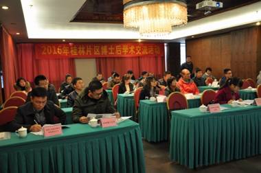 、桂林国家高新技术产业开发区、桂林医学院附属医院、桂林三金药业集团有限公司、桂林莱茵生物科技股份有限公司、桂林机床股份有限公司、广西植物研究所等桂林博士后流动站的在站博士后及相关管理人员参加了本次学术交流。