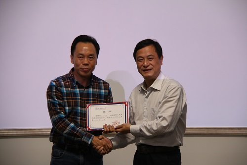 学校副厅级调研员张劲松为广东四方威凯科技集团董事长、广东江门湖南商会会长方芳颁发聘书
