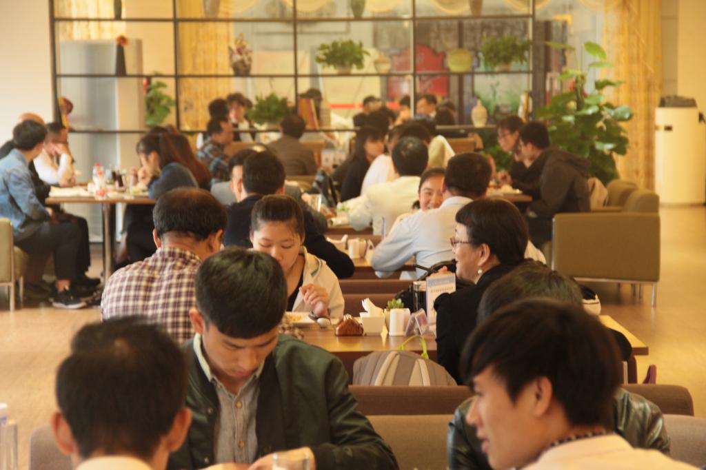 于4月25日中午在雁山校区致远楼“雅诺”主题餐厅举办企业家午餐会。邀请了诸多成功企业家与学生一齐共进午餐,深入交流,增进了解。
