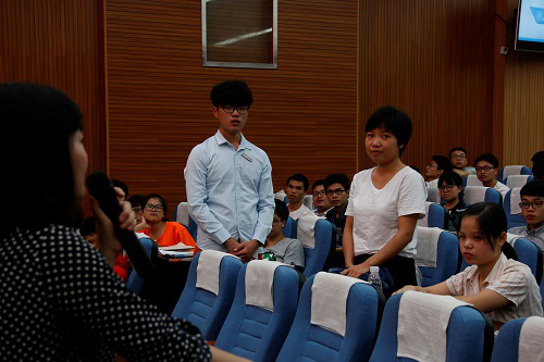 讲座伊始,汪老师向同学们介绍了英语四级考试的考察范围、评分细则、考场规则,帮助同学们更好的认识和了解英语四级考试。随后汪老师向同学们依次讲解了作文、听力、阅读、翻译的备考方法和答题技巧。针对同学们普遍薄弱的听力环节,她提出了建议与方法:一是每天坚持用40分钟专攻听力;二是加强听写的锻炼;三是通过历年真题进行全真模拟练习。之后的交流环节,同学们针对备考中遇到的问题积极发问,汪老师在认真听取问题之后,一一做了详尽的解答。