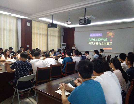 在12217多功能室召开了2017级研究生化学化工类研究生科研方法与文本撰写辅导报告会。2017级化学工程与技术及化学工程专业研究生参加了会议,报告会由李和平教授主讲。