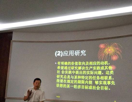 报告会上,李教授首先就研究生应注意的基本素养与要求作了说明,强调搞科研、做学术要有踏实肯干的精神。接着,李教授从科学理论与研究方法论、科研类型、课题分类、科研设计和文本撰写等方面作了深刻的讲解,并通过科研论文、专利、项目申请书进行举例,现场指出范文中存在的问题,强调其创新性和实用性。最后,李教授嘱咐17级研究新生,要调整好心态,本本分分做人、踏踏实实做事,努力在研究生期间有更多更好的收获。