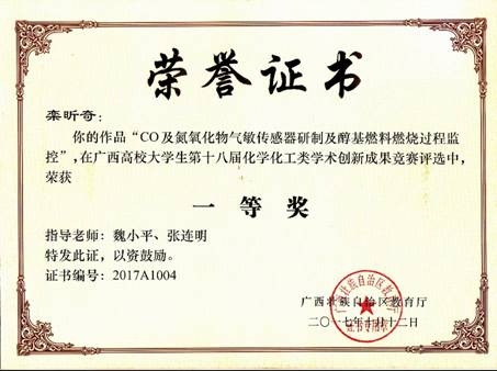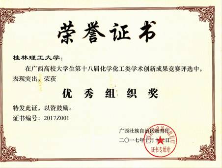 导航痕迹 当前位置: 私房俱乐部 >> 新闻资讯 >> 私房俱乐部新闻 >> 正文 私房俱乐部 学子在广西高校大学生第十八届化学化工类学术创新成果竞赛中喜获佳绩 作者:邹志明 发布日期:2017-12-12 浏览次数: 近日,从自治区教育厅《关于公布广西高校大学生第十八届化学化工类学术创新成果竞赛结果的通知》(桂教高教〔2017〕59号)获悉,私房俱乐部 在广西高校第十八届化学化工类学术创新成果竞赛中取得了一等奖1项、二等奖4项、三等奖3项的佳绩,学校获得优秀组织奖。 本届竞赛由广西教育厅举办,全区27所高等院校,3000多名在校大学生参加此次竞赛。经评审委员会专家评审,确定一等奖论文10篇,二等奖论文30篇,三等奖论文50篇。从2000年开始至今,教育厅每年举办一届竞赛,现在已经连续举办18届竞赛。 优秀组织奖证书 一等奖证书 颁奖现场 上一条:梁福沛副校长带队参加2017年广西高等教育学会化学化工类专业委员会暨化学院(系)院长、主任会议 下一条:私房俱乐部 召开本科教学督导工作总结交流会