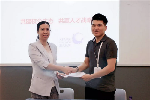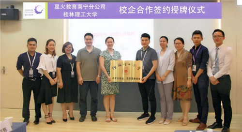 党委副书记陶剑飞代表学院与星火教育南宁分公司总经理叶健锋老师签署实习实践基地协议书,并进行授牌仪式。双方表示非常期待接下来的合作,希望未来有越来越多优秀的毕业生加入星火教育,也希望星火教育能定期反馈校友在星火教育的发展情况等,学校方面也将提供更多的服务,帮助学生和企业相互促进和相互成就,建立完善的校企合作体系。