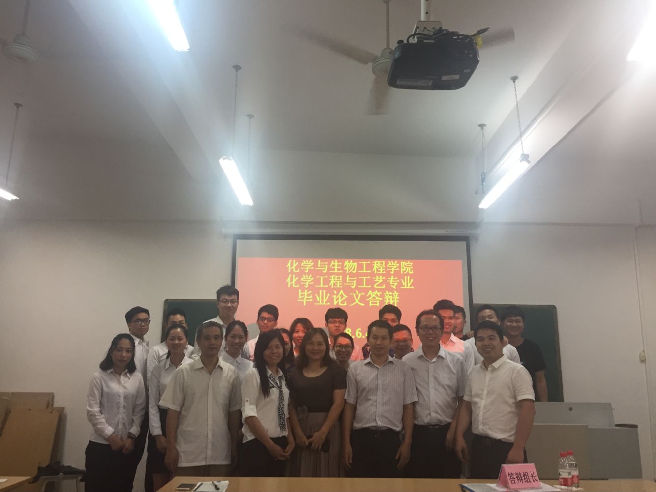 化学工程与工艺专业电化学方向2018届本科毕业生在雁山校区07607和07611教室举行了毕业设计(论文)答辩会。电化学教研室全体指导教师及外聘专家——桂林长海科技发展有限公司蔡先礼、钟雪参加了答辩会。