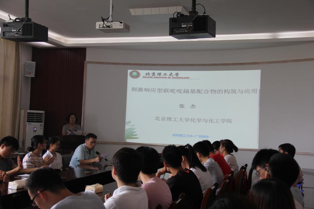 邀请,北京理工大学张杰教授在雁山校区12217多功能室作了题为“刺激响应型联吡啶鎓基配合物的构筑与应用”的学术报告。私房俱乐部