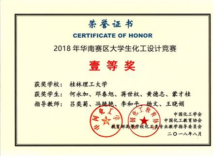 参赛队伍还获得全国叁等奖10项、华南赛区叁等奖17项。我校今年是全国各赛区成功参赛队伍及获奖率最高的学校,获奖率高达85%,在获奖比例与数量上均为历届参赛最好成绩。说明我校化工专业学生较好地理解了本次大赛的主题,工程设计能力得到了总体提升。获奖情况如下: