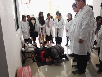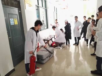 于2019年4月3日开展了消防安全现场演练教育活动。学院教师代表与应用化学专业的志愿者同学参加了本次演练。