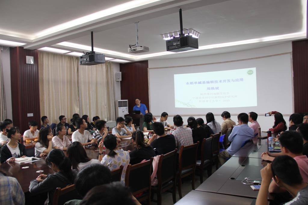邀请,5月20日上午,中国农业科学院周焕斌研究员在雁山校区12217多功能室作了题为“水稻单碱基编辑技术开发与应用”的学术报告。私房俱乐部
