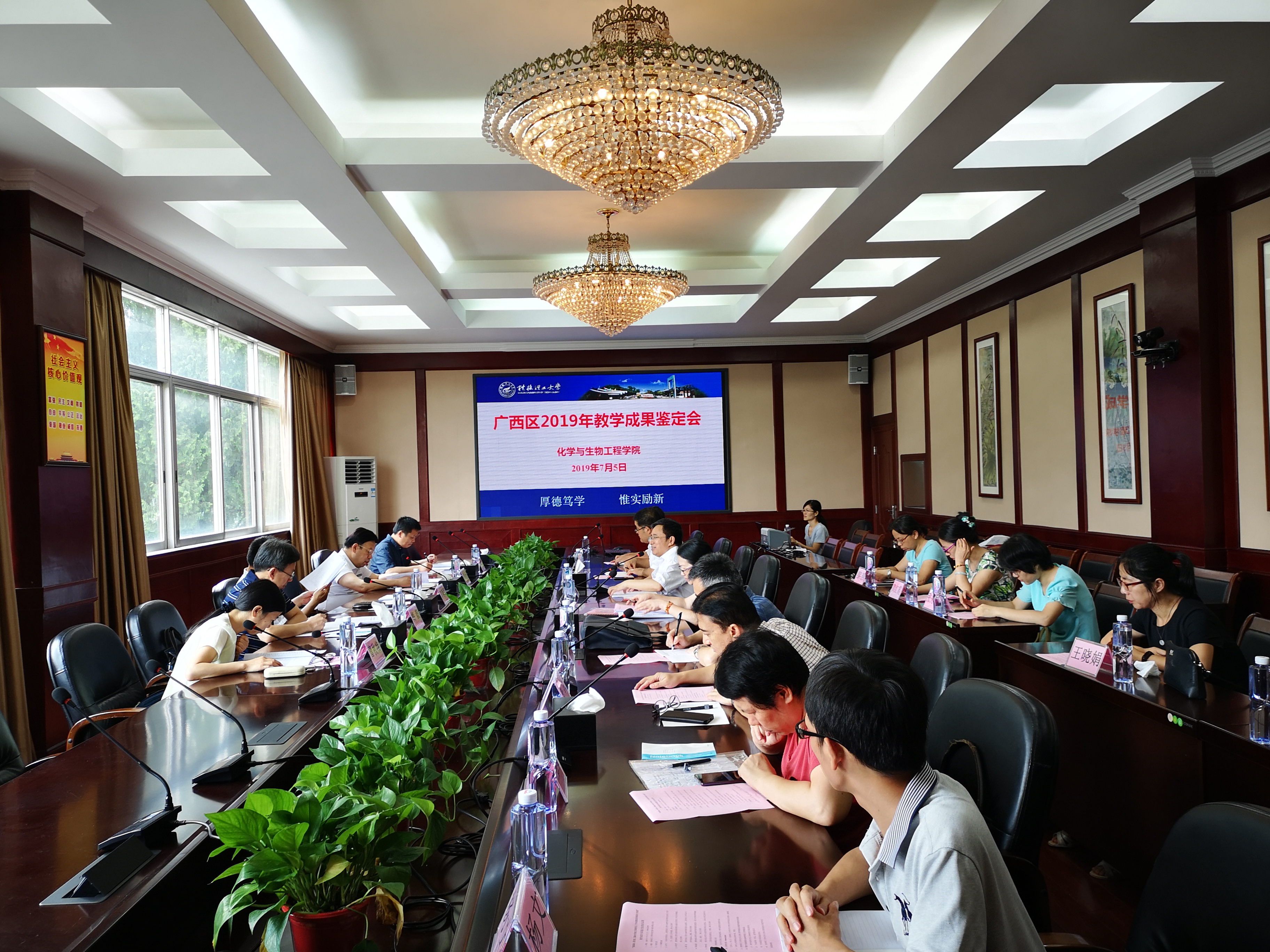 在屏风校区教八楼3楼会议室召开广西区2019年教学成果鉴定会。中国科学院院士、大连理工大学彭孝军教授(鉴定专家组组长),中北大学刘有智教授,昆明理工大学梅毅教授,四川大学郑成斌教授,云南大学曹秋娥教授,学校教务处副处长刘峥教授以及私房俱乐部