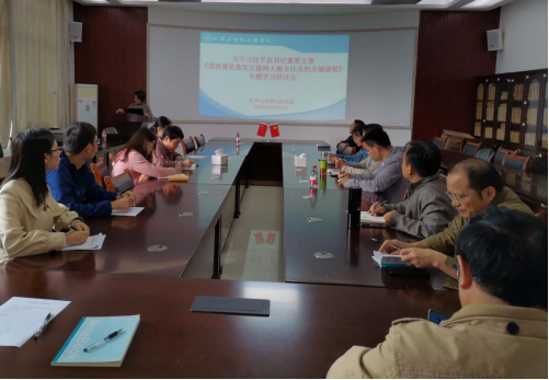 在雁山12217多功能会议室召开了学习贯彻习近平总书记重要文章《思政课是落实立德树人根本任务的关键课程》专题学习研讨会。会议采用线上线下同步进行的方式,学院领导以及教学指导委员会成员及各教研室教师代表参加了线下会议,其他老师同步参加钉钉线上会议,会议由院长助理聂瑾芳主持。