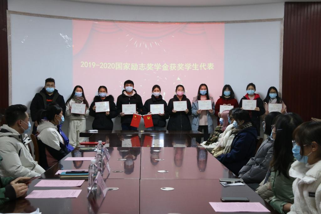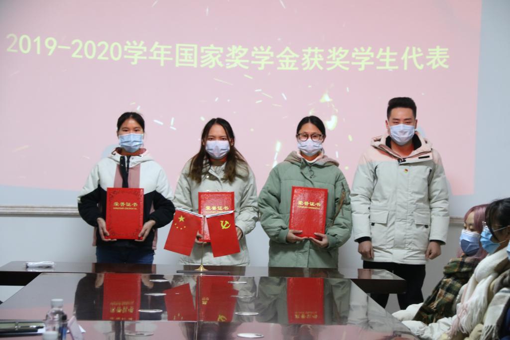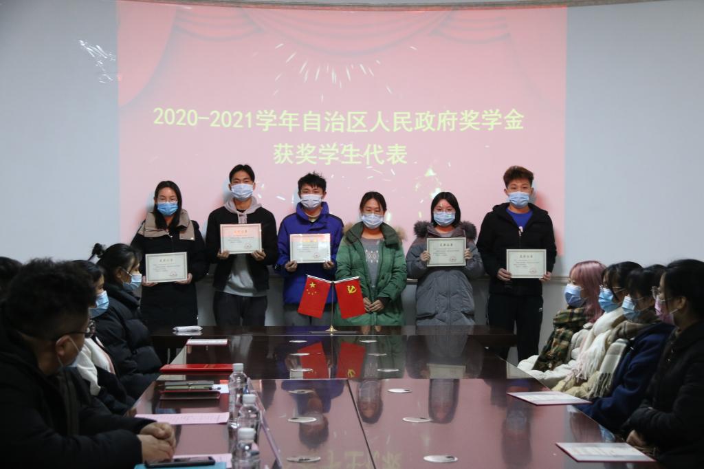 随后,张伟颀老师宣读了表彰决定,与会老师向2019-2020学年度国家奖学金、国家励志奖学金、2020-2021学年度自治区人民政府奖学金、2019-2020学年度私房俱乐部