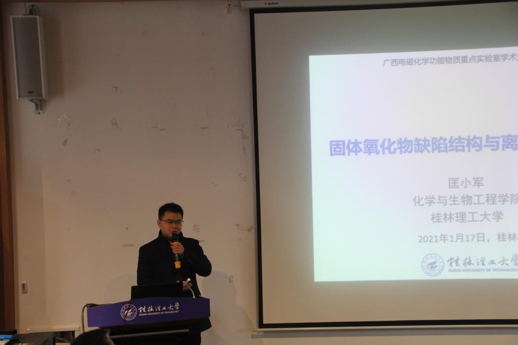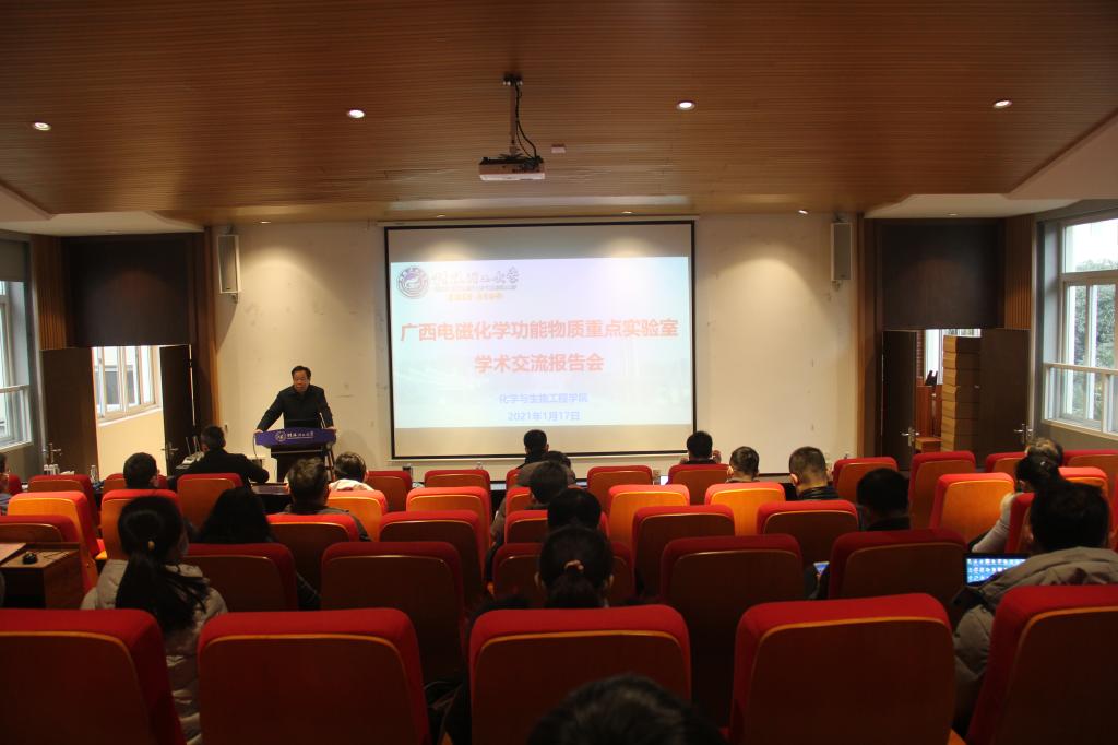 举办的广西电磁化学功能物质重点实验室学术交流报告会在屏风校区科创中心学术报告厅顺利召开。学校副校长、广西电磁化学功能物质重点实验室主任梁福沛教授出席并在开幕式上致辞,学院全体专业教师参加了此次会议。