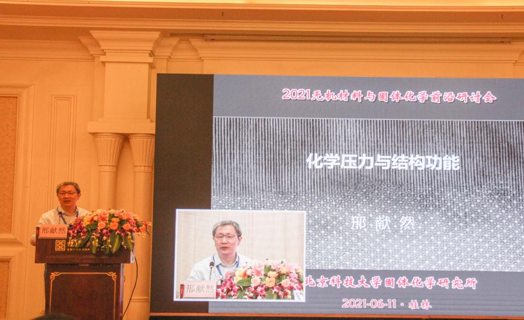 具体承办的“2021年无机材料与固体化学前沿研讨会”开幕式在桂林举行。本次会议主席、中国科学院院士、吉林大学冯守华教授(线上出席),中国科学院院士、中国科学院福建物质结构研究所洪茂椿研究员,中国科学院院士、清华大学李亚栋教授,中国科学院院士、中山大学陈小明教授(线上出席),教育部长江学者特聘教授、北京科技大学邢献然教授出席,学校校长解庆林教授出席并致辞,学校副校长梁福沛教授出席并主持开幕式。来自全国50多所高校、科研院所的180多名代表参加本次研讨会。