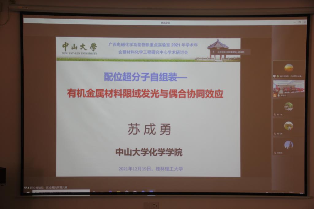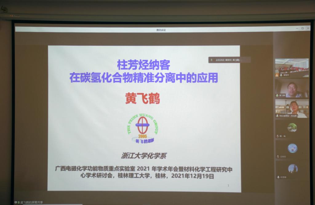在屏风校区科技园众创中心学术报告厅举办广西电磁化学功能物质重点实验室2021年学术年会暨材料化学工程研究中心学术研讨会。学校副校长、广西电磁化学功能物质重点实验室主任梁福沛教授出席并在开幕式上致辞。会议邀请了浙江大学黄飞鹤教授、中山大学苏成勇教授、华东理工大学教授/浙江工业大学叶邦策教授、湖南大学王双印教授、华东理工大学/郑州大学韩一帆教授等专家在线上参会,私房俱乐部