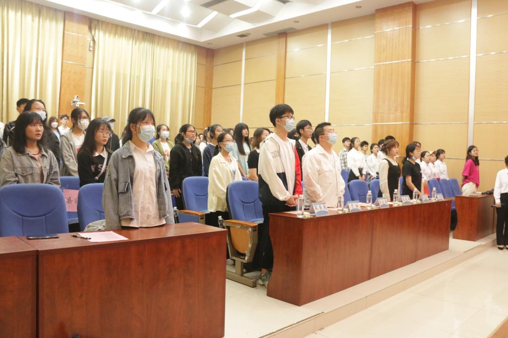 活动伊始,全体人员共唱共青团团歌,团日活动由此拉开序幕。首先,全体人员观看了令人激昂振奋的视频《学党史 忆初心——中共五大:狂澜江城路何方》。从那时起,信仰就是我们队伍高扬的战旗;从那时起,信仰就如血脉融入党的肌体。随后化生学院艺术团朗诵队为我们带来红色诗朗诵《信念永恒》。让全场人员再次接受了红色精神洗礼,进一步坚定了理想信念。朗诵结束后,到了党史知识竞答环节,通过竞答让同学们对我们的党有了更深的了解,回顾建党百年伟业,感受革命情怀。接下来是艺术团带来演唱歌曲《孤勇者》,激情澎湃的歌曲启示着我们迎难而上,敢于斗争,砥砺前行。最后,由张萌萌老师上台对本次活动进行总结与点评。
