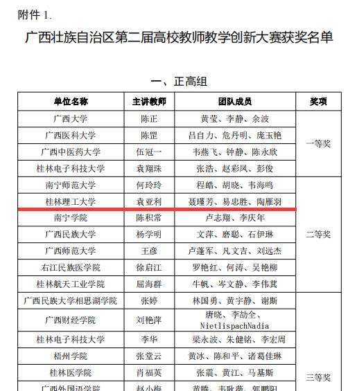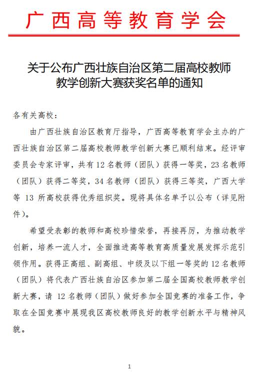 近日,广西高等教育学会公布了第二届广西高校教师教学创新大赛获奖名单,私房俱乐部