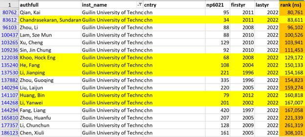 数据来源:Ioannidis, John P.A. (2022), “September 2022 data-update for "Updated science-wide author databases of standardized citation indicators"”, Mendeley Data, V4, doi: 10.17632/btchxktzyw.4 (//elsevier.digitalcommonsdata.com/datasets/btchxktzyw)