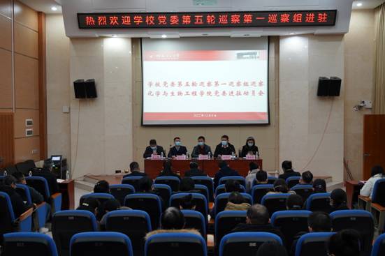党委进驻动员会在雁山校区萃华楼报告厅召开。第一巡察组组长周国桥,第一巡察组副组长潘思伊、宋玉辉和第一巡察组全体成员出席会议,学院全体教职工、学生党员代表参加了会议。会议由学院党委书记彭代江主持。