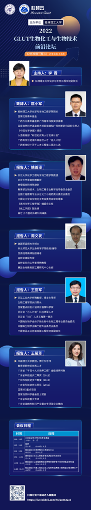 依托B站“科研云”平台成功举办了“2022 GLUT生物化工与生物技术”前沿论坛。本次论坛邀请了浙江大学姚善泾老师、东北师范大学周义发老师、浙江工业大学王亚军老师、华南理工大学王菊芳老师等 4位生物化工与生物技术领域的专家作线上报告。匡小军院长致欢迎词,向参会专家介绍了学校和学院基本情况,同时希望各位专家能够对私房俱乐部