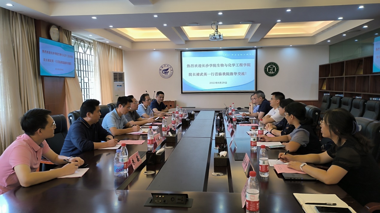 褚武英对长沙学院生物与化学工程学院教学和科研方面的基本情况以及未来的发展方向和需求进行了介绍,并希望双方加强携手合作,深化沟通交流,促进互利共赢,推动双方合作结出更多丰硕果实。