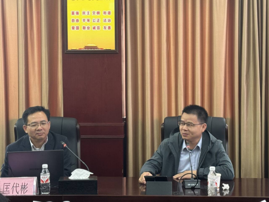 匡代彬教授讲座(左)、匡小军院长主持会议(右)