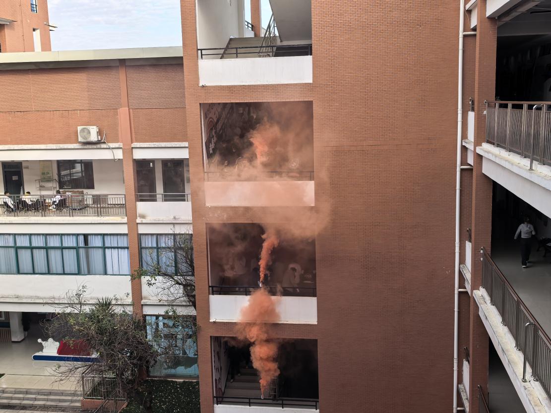 随着急促的消防警报声响起,各楼层引导员迅速到位,按照预设演练方案,有序引导师生弯腰捂鼻、低姿前行,沿着安全通道快速撤离。演练过程中,全体师生严格遵守演练纪律,不推挤、不慌乱,动作规范、秩序井然。
