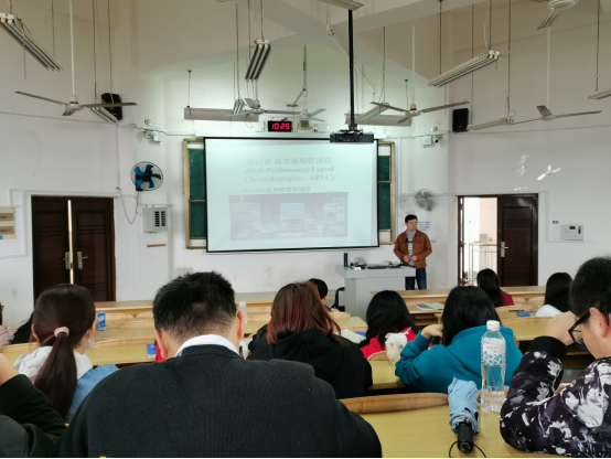 闫力强老师从发展情况、特点、基本原理、操作过程和应用五个方面讲授了《高效液相分析法》的内容,并指导学生进行了问题思考与讨论。教研室老师们随堂听课了解课堂实际教学情况,记录教学内容,并进行了深入地交流与探讨,指出其在课堂教学设计、教学内容、教学方法等方面的优缺点,并提出了一些提高课堂教学质量的意见和建议。本次公开课观摩活动给老师们提供一次难得的学习交流的机会。教研室听课教师们与被听课老师均受益匪浅。