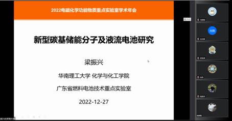 和重点实验室近年来的发展情况,希望通过举办学术年会,加强与校外专家的交流合作,促进重点实验室发展,进一步推进学院学科建设。随后,邢献然教授、陈兴教授、谭必恩教授、刘又年教授、梁振兴教授分别做了题为“局域结构在催化能源材料中的应用”、“糖密码”的化学解析”、“多孔有机材料的构建新策略及其应用”、“电催化CO2还原中催化剂活性位点设计及结构演变研究”、“ 新型碳基储能分子及液流电池研究”的学术报告,并与参会老师广泛交流,深入探讨。本次会议拓宽了大家学术视野,取得了良好交流效果。