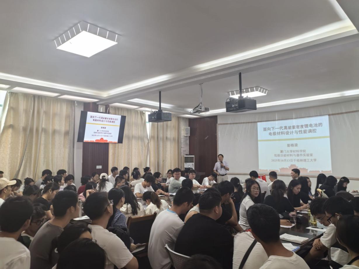 10月13日上午,厦门大学彭栋梁教授应我院邀请,在我校雁山校区萃华楼217室作题为《面向下一代高能量密度锂电池的电极材料设计与性能调控》的学术报告。报告会由学校科学技术研究院副院长刘勇平教授主持,学院近百名师生参加。