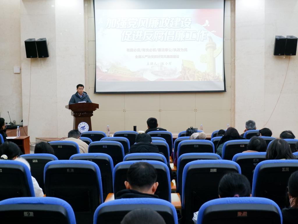于图书馆报告厅开展“加强党风廉政建设,促进反腐倡廉工作”主题党课。本次党课由学院党委副书记、院长匡小军主讲,全体教师党员参加。