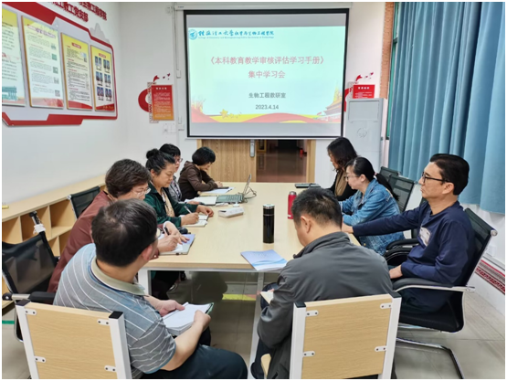 为了更好的迎接即将到来的本科教育教学审核评估工作,2023年4月14日,生物工程教研室在教12楼二楼连廊会议室召开了《本科教育教学审核评估学习手册》(教师版)集中学习会议,教研室全体在岗教师参加了此次会议,会议由教研室主任李静主持。