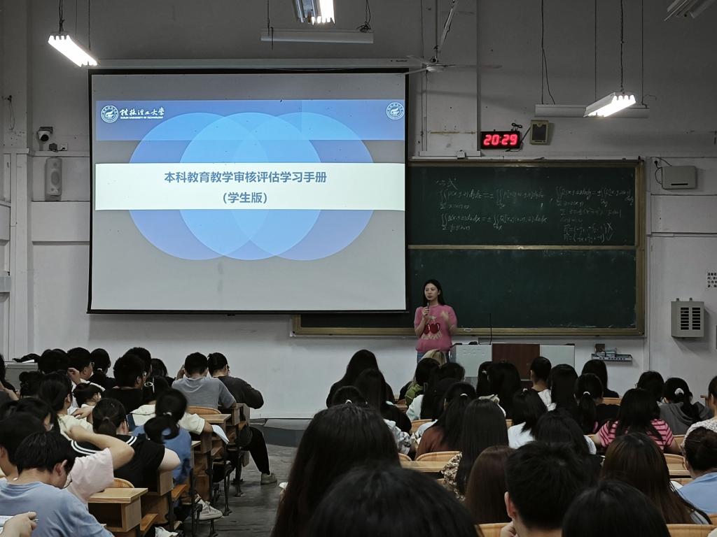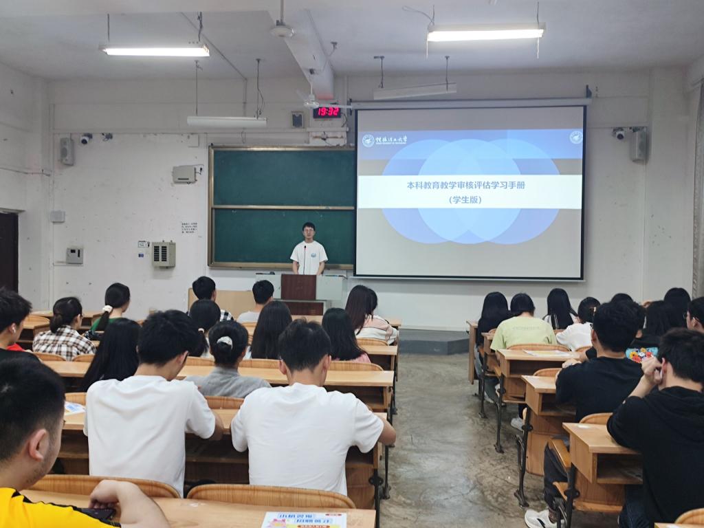 在雁山校区06104、06206、06401、07318教室面向学院全体学生组织开展了本科教育教学审核评估学习。