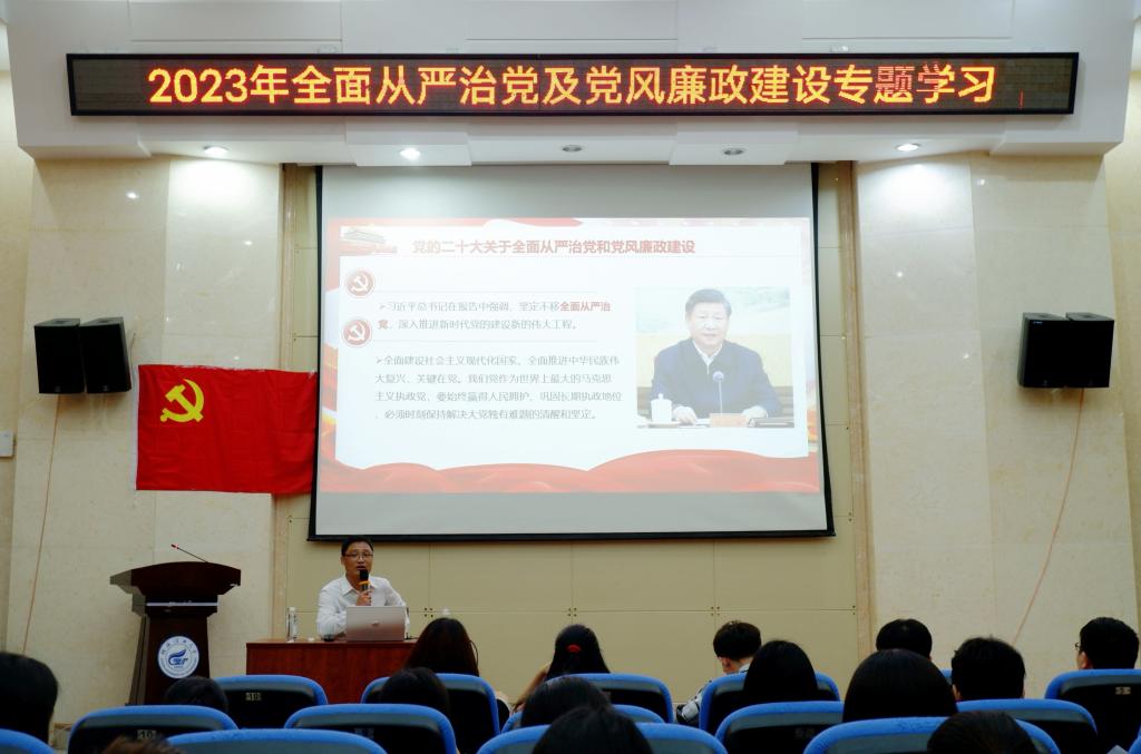 为了贯彻党的二十大全面从严治党部署,坚定不移推进党风廉政建设,加强对毕业生党员的党性和廉政教育,学院于5月24日下午在萃华楼报告厅组织开展《全面从严治党及党风廉政建设》专题党课。本次专题党课学院党委副书记李少华主讲,学院全体毕业生党员参加。